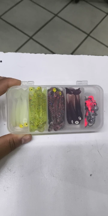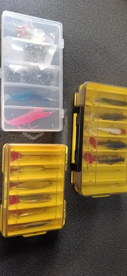 Inclut différents appâts, hameçons et accessoires essentiels.